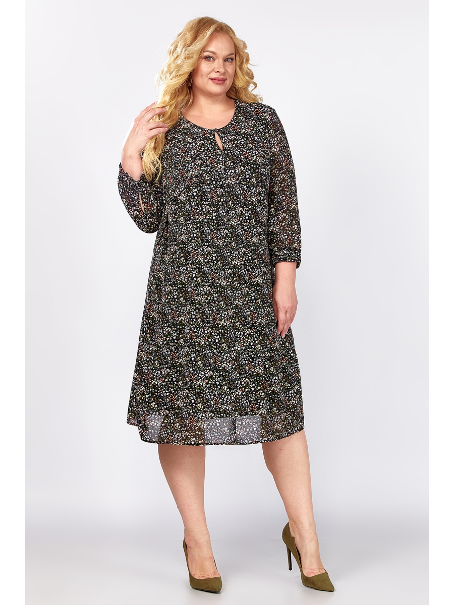 Элегантное платье из шифоновой ткани с цветочным принтом идеально подойдет для создания нежного образа романтичной кокетки. Горловина овальной формы с фигурным вырезом. Асимметричный перед с отлетными планками в швах и аккуратной, струящейся драпировкой. Накладной карманчик с изящной пуговкой, несомненно, будет нужным дополнением. Спинка со средним швом. Игра длин платья и подкладки наполняют образ воздушной многослойностью. Рукав втачной, двухшовный, низ рукава с притачной манжетой, собран на эластичную тесьму. Нарядно-повседневное платье, в котором Вы будете выглядеть женственно по любому случаю: как в повседневной жизни, так и на празднике.