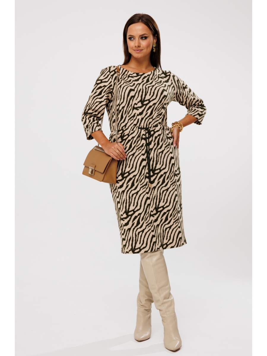Оформить заказ →Платье женское полуприлегающего силуэта, выполненное из мягкого трикотажного полотна (тянется) с принтом «Зебра». Платье отрезное по линии талии с настрочной кулисой и отделочным шнуром. Спинка со средним швом и разрезом в нижней части. Рукава втачные, одношовные с притачной манжетой. Горловина по переду – фигурное «Каре», по спинке – округлая. Отделочный шнур декорирован металлическими наконечниками. Платье без подкладки.