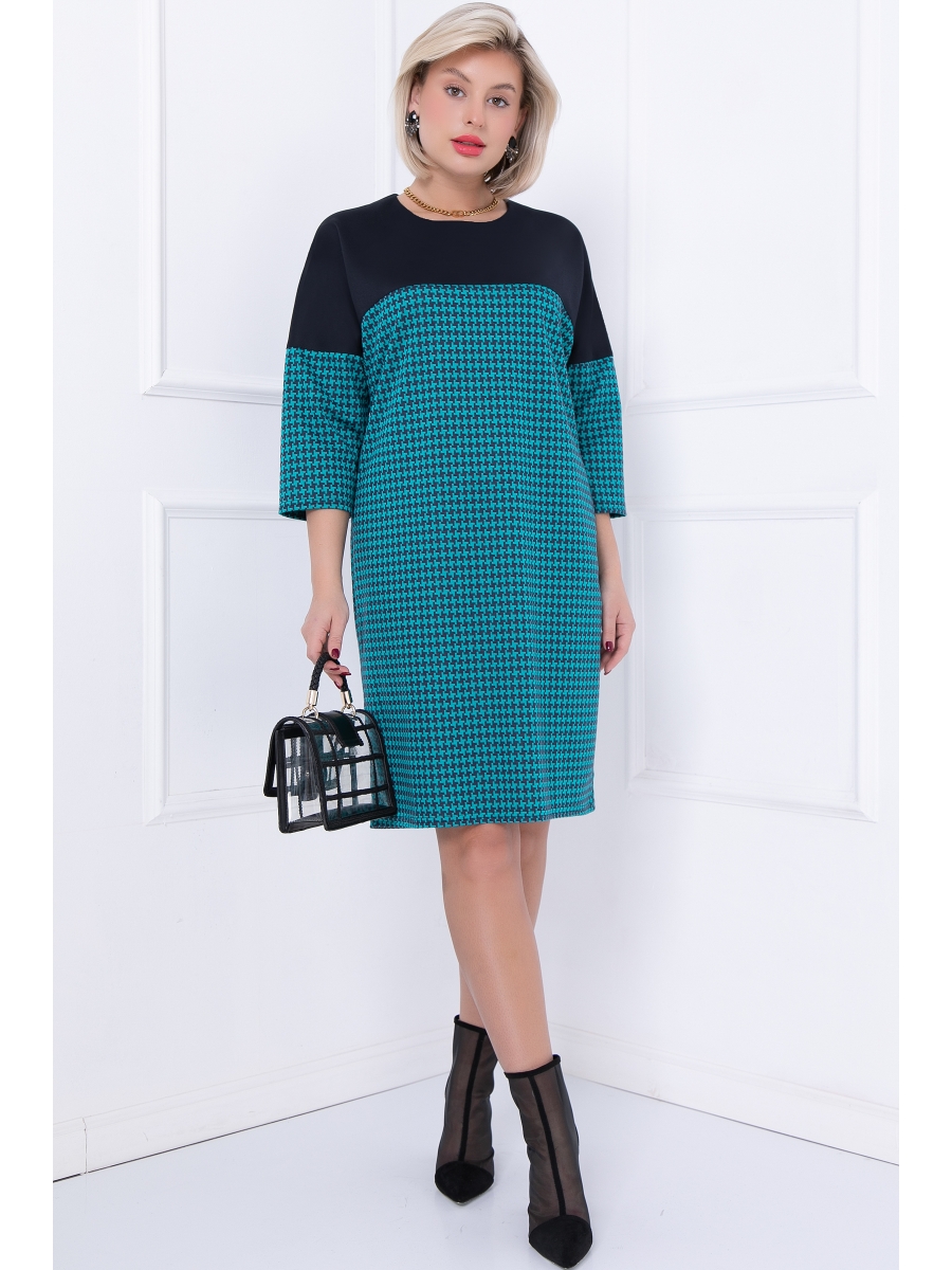 Катена – стильное платье свободного кроя с отрезной кокеткой на груди. Это платье идеально подходит для создания модного и комфортного образа. Платье имеет рукав со спущенным плечом, что придает ему особую элегантность и шарм. Этот рукав добавляет платью легкости и непринужденности, делая его отличным выбором для тех, кто ценит стиль и удобство. Принт гусиная лапка придает платью интересный акцент и оригинальность. Этот принт добавляет некоторую игривость и жизнерадостность платью, делая его привлекательным и запоминающимся. Бирюзовый оттенок платья придает ему яркий и свежий вид. Этот оттенок легко сочетается с другими цветами и позволяет создавать разнообразные образы. Он также подходит для различных сезонов и может быть использован как в повседневной носке, так и на особых случаях!