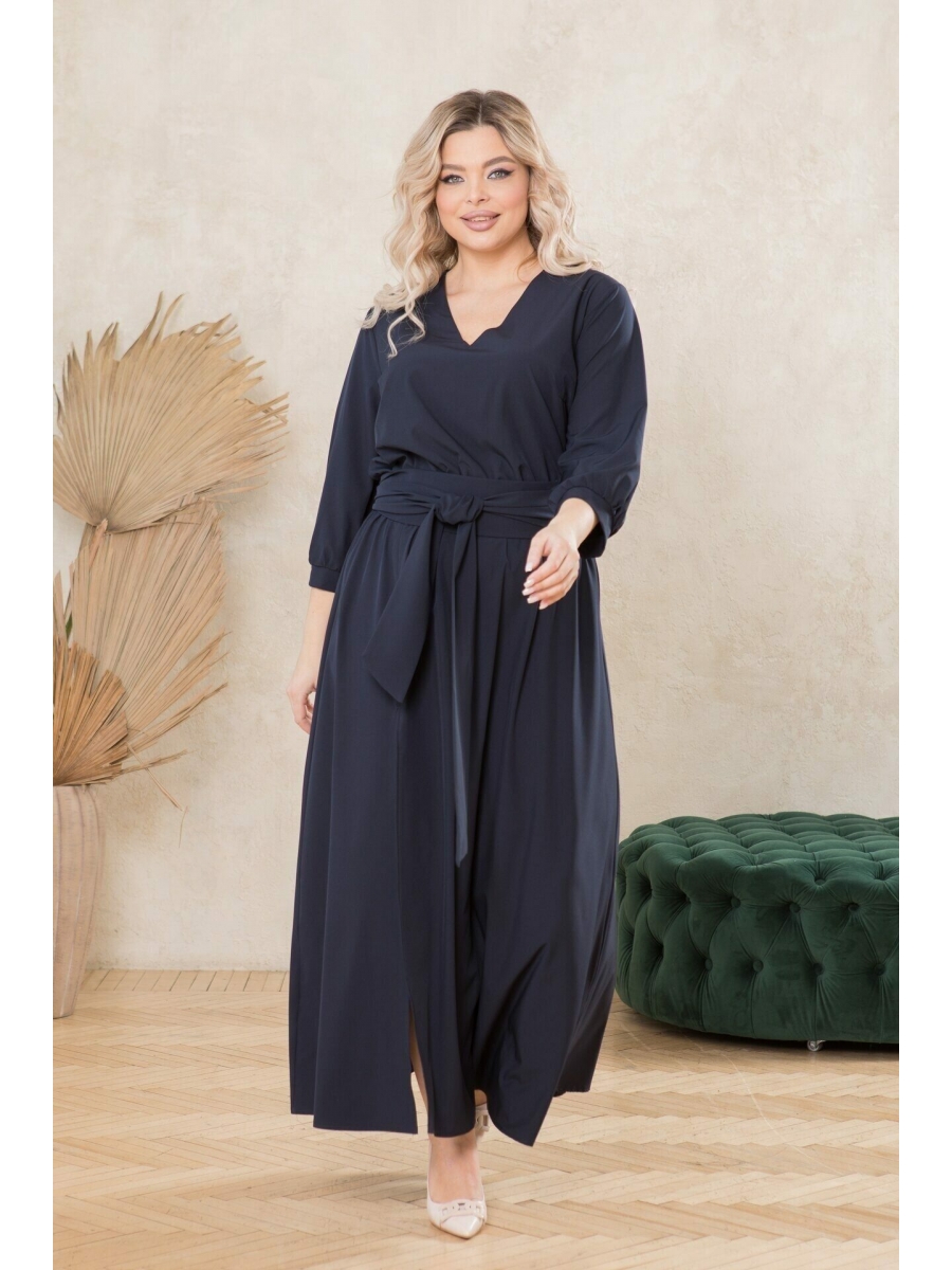 Элегантное платье макси. Выполненное из плательного полотна Ниагара. Расцветка темно-синий. V - образная горловина на внутренней обтачке. Втачной рукав 48 см, собран на манжету. Модель свободного силуэта, отрезная по линии талии, присборена на эластичную резинку. По переду разрез. Легкое и воздушное платье придаст вам женственности и шарма. Тканевый пояс входит в комплект. Рекомендуемая стирка при t не более 30.