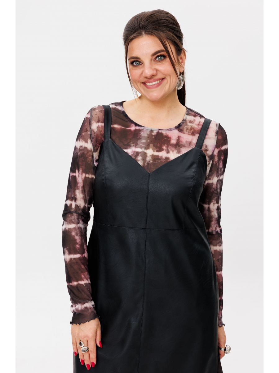 Этот сарафан можно носить как с классической рубашкой 1203.1 и блузой 1323, так и с более casual вариантами, такими как прозрачный лонгслив или футболка. Универсальный и эффектный элемент гардероба, который подчеркнет ваш стиль и уверенность.
