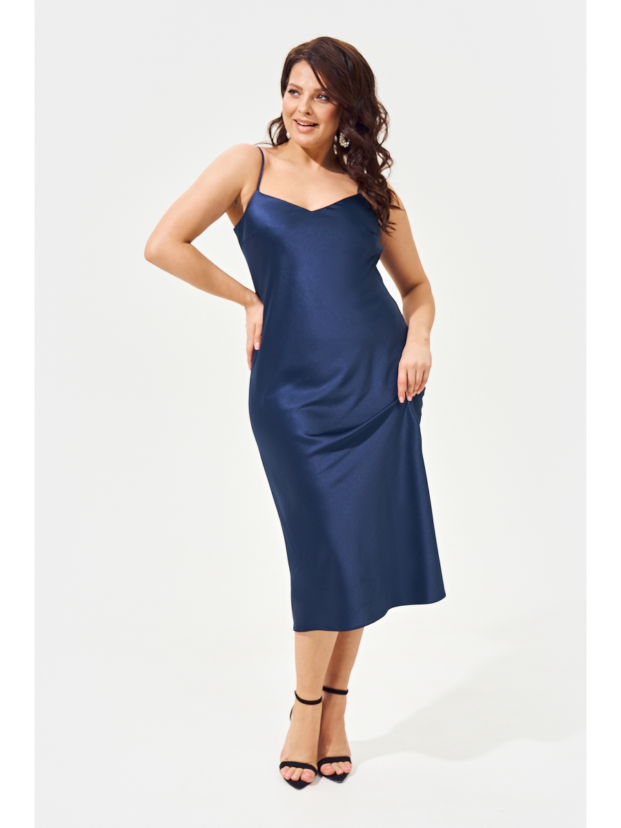 Женское шелковое платье-комбинация на регулируемых бретелях длины миди. Платье выполнено "по косой" из плотного, держащего форму шелк-сатина без подкладки. В бокой шов вшита потайная молния.