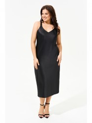 Женское шелковое платье-комбинация на бретелях длины миди. Платье выполнено "по косой" из плотного, держащего форму шелк-сатина без подкладки. В бокой шов вшита потайная молния.