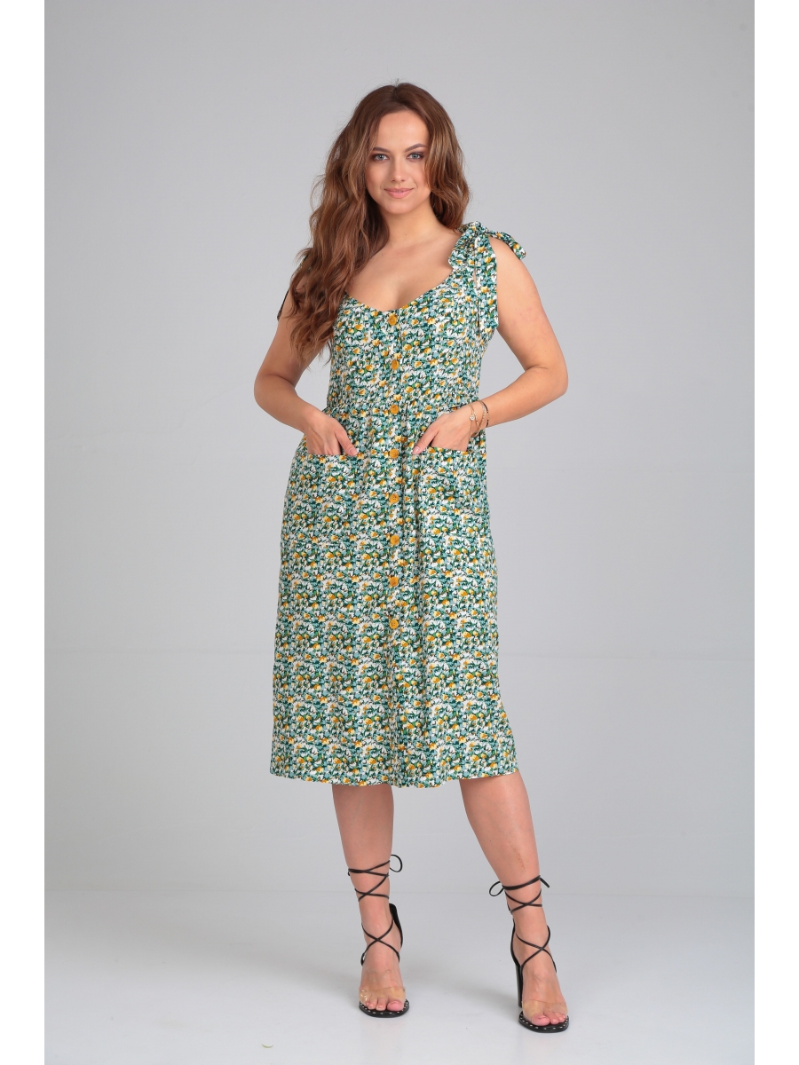 Нарядный и в то же время относительно простой летний сарафан, выполнен из легкой вискозы. Полуприлегающий силуэт и натуральная ткань обеспечат комфортную носку даже в самые знойные дни. Застёжка на пуговицах. Юбка имеет небольшую сборку по линии талии. По бокам два накладных кармана. Благодаря завязкам на плечах прекрасно отрегулируется на любой рост. Универсальный крой, сочетающийся как с туфлями, так и с кедами. Это изделие станет любимым в Вашем гардеробе в наступающем сезоне. Изделие подойдет на рост 170 см.