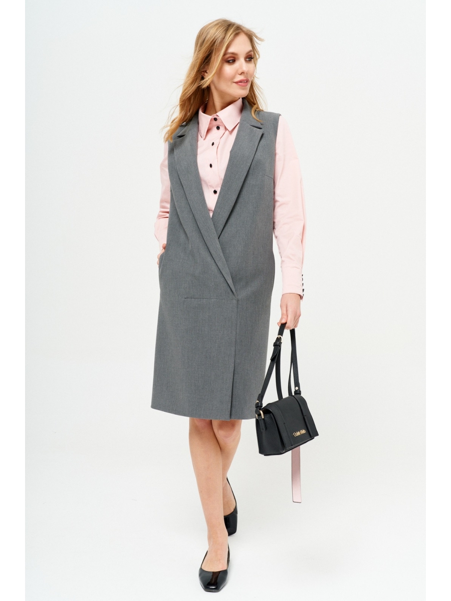 Оформить заказ →Сарафан из костюмно-плательной ткани, полуприлегающего силуэта, на подкладке. Воротник пиджачного типа. Перед с нагрудными вытачками и прорезными карманами с листочками. Спинка со средним швом и талиевыми вытачками.