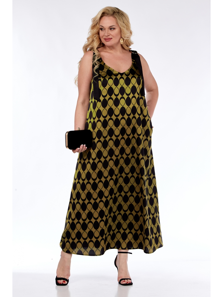 Сарафан женский А-силуэта из лёгкой плательной ткани. По переду нагрудные вытачки. Сарафан на широких, длинных бретелях с полукольцами. По спинке фигурный вырез с перемычкой, средний шов.