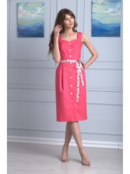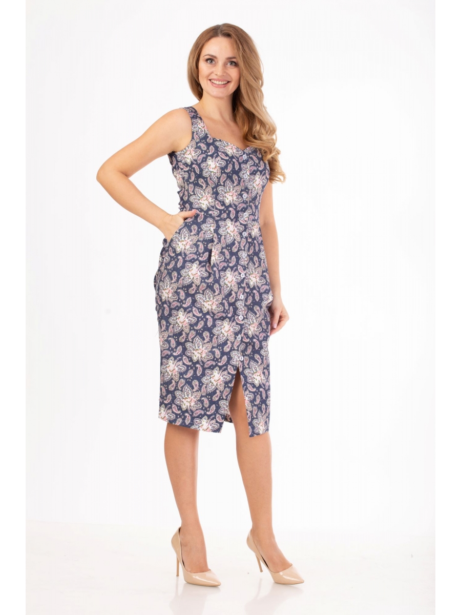 Летний сарафан из принтованной хлопковой ткани станет любимым в вашем гардеробе! Прилегающий силуэт, не сковывает движения за счёт добавления эластичных волокон в состав ткани, актуальная длина ниже колена подчеркнет вашу женственность. Перед отрезной по линии талии, с вытачками, боковыми карманами и складками по талии, по спинке обработаны вытачки. Сарафан имеет центральную застёжку на петли и пуговицы. В комплекте прилагается пояс. Отличный вариант для повседневной носки, в котором вы будет чувствовать себя очень комфортно и выглядеть неотразимо!