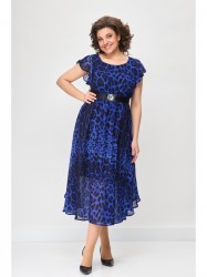 Оформить заказ →Платье женское из модной, со звериным принтом, шифоновой ткани, отрезное по линии бедер. По полочке нагрудные вытачки, по спинке - талевые. Платье на резинке на уровне груди. По спинке потайная молния. Юбка изделия-полуклеш. Платье на подкладке. Рукав крылышко. Украшением платья служит пояс ( состоящий из двух частей, сзади на завязке), который входит в комплект.