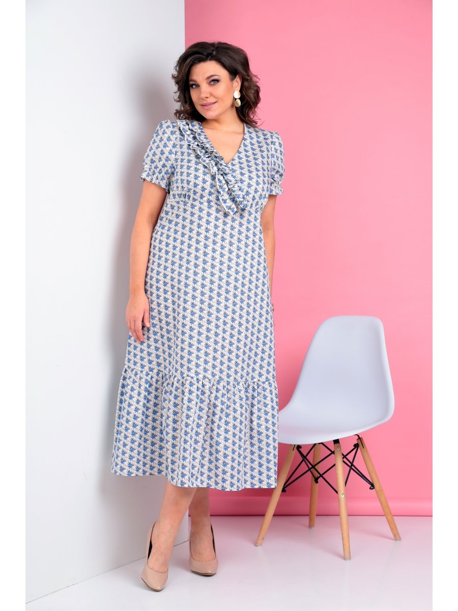 Оформить заказ →Платье женское выполнено в романтическом стиле, из хлопкового полотна с дизайном, силуэт слегка притален. Отрезное по линии талии. Вырез горловины V-образный, оформлен запахом с двойными оборками по одной стороне. Рукав втачной, со сборкой по окату, низ рукава собран на резинку. По низу платья выполнен волан. Спинка со средним швом и выточками, в боковом шве выполнена застежка на потайную молнию.