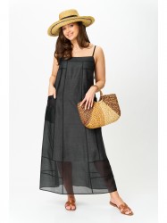 Сарафан летний, выполнен из вискозного тонкого полотна с гладкой шелковистой поверхностью, очень лёгкий, невесомый, идеальный вариант для жаркого лета. Сарафан А-обратного силуэта на тонких регулируемый бретелях. По переду выполнены конструктивно-декоративные подрезы и швы; 2 накладных кармана. Спинка аналогично переду. Сарафан без застёжки. Сарафан на подкладке.