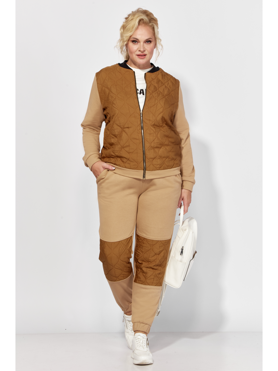 Материал теплый и приятный, отлично подойдет для прохладной летней погоды, а прохладными осенними вечерами заменит собой куртку ветровку или толстовку. Эластичные манжеты на рукавах и по низу брючин, а также мягкая резинка на поясе обеспечивают комфортную посадку и носку и не будут стеснять движения. Наслаждаться спортивными активностями будет комфортно. Комбинирование стеганной ткани и трикотажа создает гармоничный индивидуальный образ.