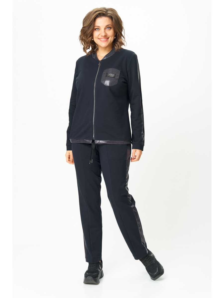 Костюм выполнен в спортивном стиле.