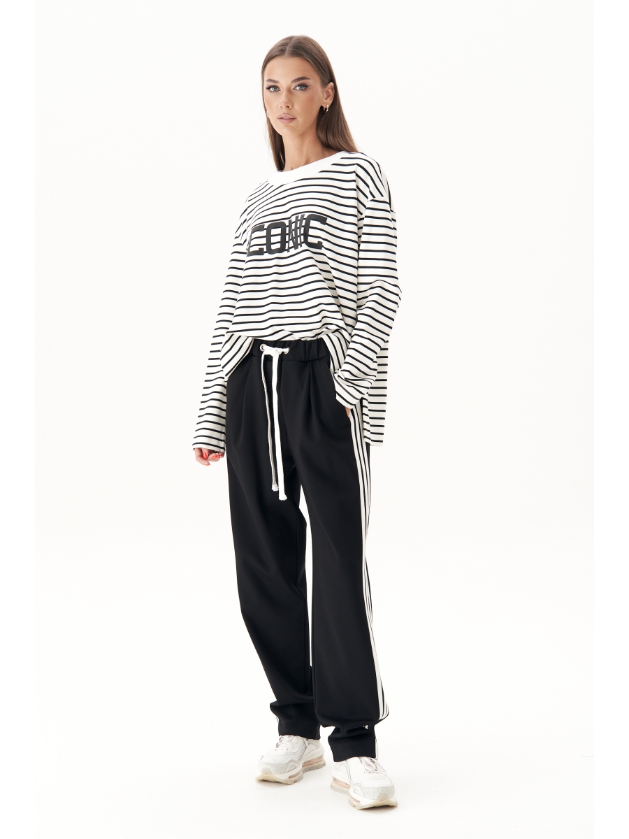 Ультрамодные брюки с лампасами в стиле "adidas" с вертикальными боковыми карманами с листочкой, поясом с эластичной тесьмой, люверсами и отделочным шнуром.