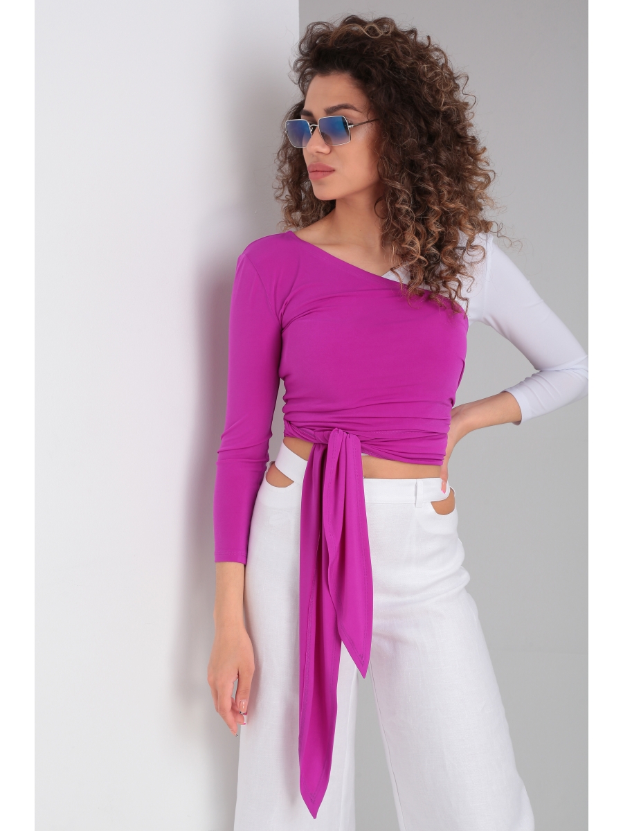 Двухкомпонентный «Топ-трансформер» легкого стрейчевого трикотажа, состоит из двух контрастных ассиметричных изделий, который дает возможность создания нескольких цветовых решений вашего образа.