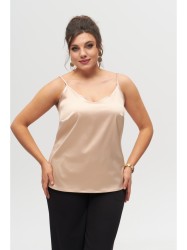 Топ женский, полуприлегающего силуэта, длина до середины бедра. По переду V-образный вырез, нагрудные вытачки. По спинке талиевые вытачки. Топ на брителях с регуляторами.
