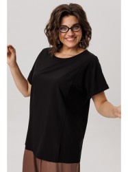 Элегантный округлый вырез горловины подчеркивает женственность, сохраняя при этом сдержанность и универсальность. Передняя часть топа украшена центральной деталью из отделочной ткани, которая придает модели изысканный акцент, не перегружая общий вид.