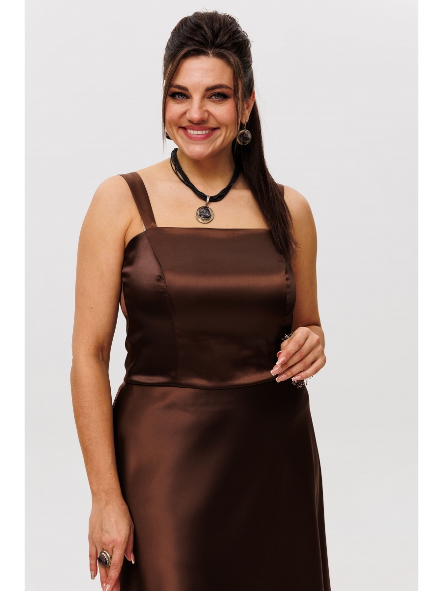 На модели в топе в цвете «горький шоколад» юбка 1291.