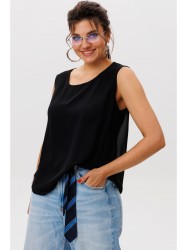 Особую изюминку топу придаёт элегантная деталь на спинке — вертикальный разрез-щель, оформленный застёжкой на навесную петлю и декоративную пуговицу. Этот элемент добавляет ноту игривой соблазнительности, не нарушая общей гармонии образа.