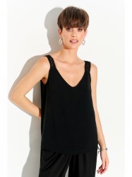 Женская базовая блуза полуприлегающего силуэта выполнена из лёгкой струящейся ткани на бретелях из плотного кружева. Блуза полностью соответствует заявленному размеру.
