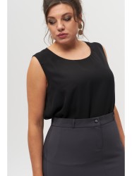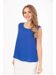 Топ свободного силуэта, немного расширенного к низу, перед двойной, не просвечивает, по спинке выполнен разрез-щель с застёжкой на навесную петлю и красивую пуговицу.