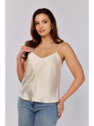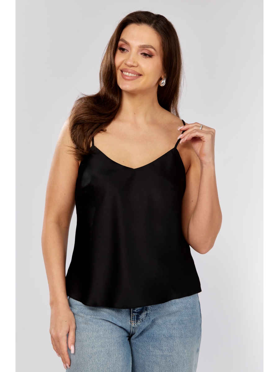 Топ из атласной ткани, покроенный по косой. По переду нагрудные вытачки. Вырез горловины фигурный . Бретели могут регулироваться.