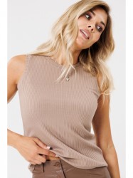 Топ женский полуприлегающего силуэта из трикотажной ткани. Горловина и проймы обработаны бейкой.