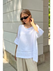 Оформить заказ →Туника изготовлена из качественного мягкого льна с эффектом мятости свободного силуэта с рукавом - реглан. Горловина окантована. По низу изделия и по низу рукава - отделка тесьма-шитьё из хлопка.