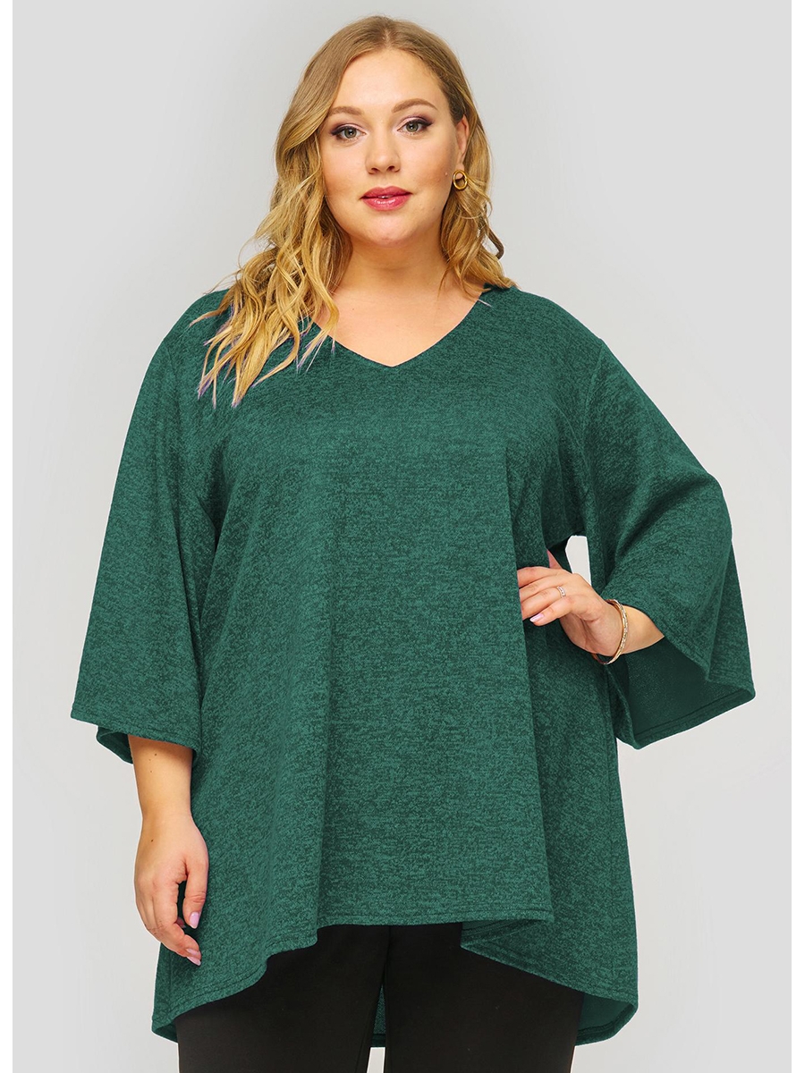 Свободная туника с ассиметричной линией низа из мягкого джерси-меланж. V-вырез горловины. Рукав расклешенный. Идеально сочетается с джинсами, зауженными брючками 1412604.