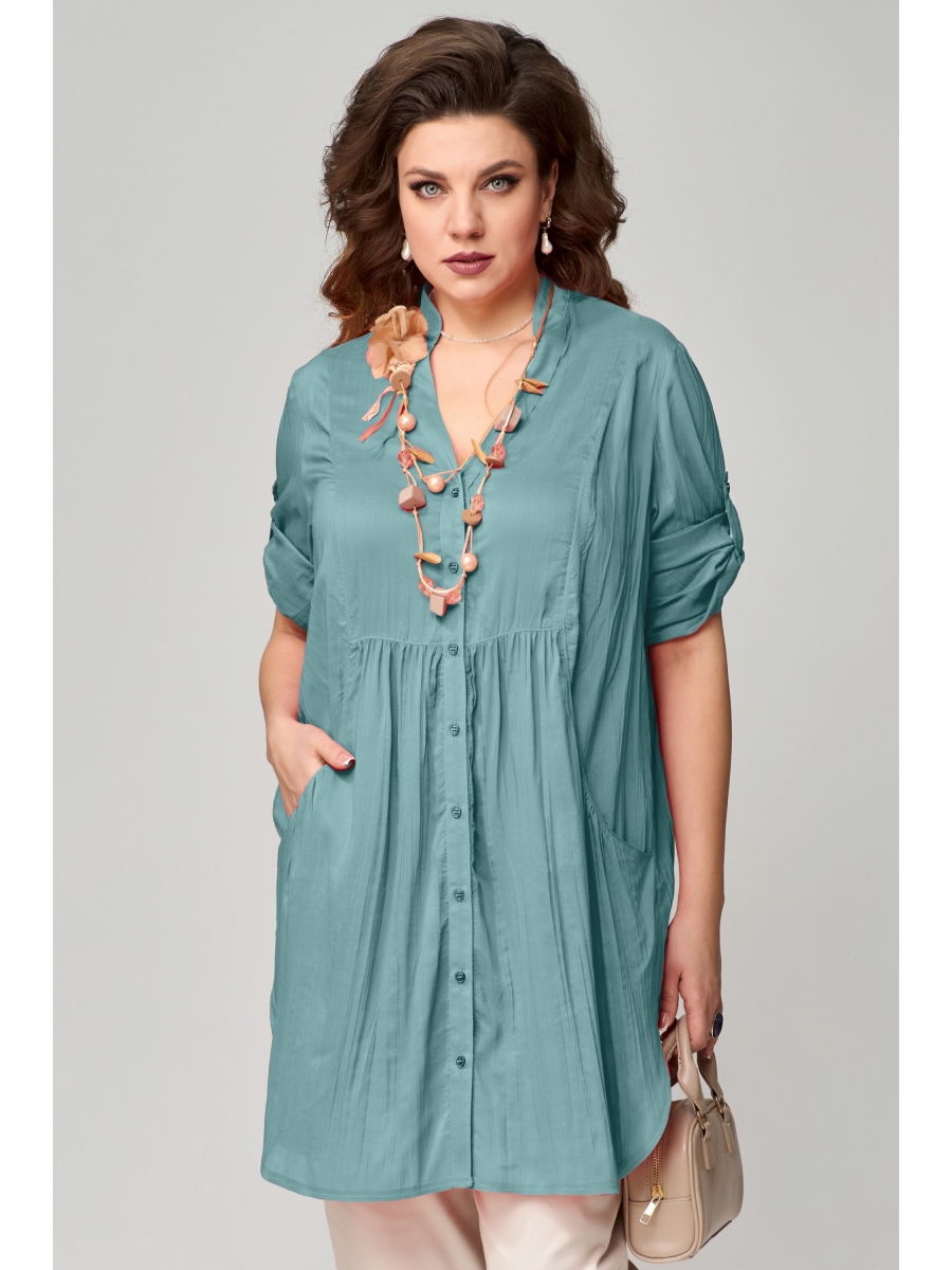 Туника ""Медея"" — это воплощение женственности и изящества, где каждая деталь продумана до мелочей. Свободный силуэт дарит легкость и комфорт, позволяя ткани мягко струиться, подчеркивая естественную грацию движений. Изящный фигурный вырез горловины, дополненный отрезными планками, придает образу нотку элегантности, а высокий воротник-стойка добавляет благородного шарма. Длинные втачные рукава, украшенные притачной манжетой с застежкой на пуговицы, позволяют регулировать длину с помощью паты, обеспечивая удобство и стиль. По переду — аккуратные фигурные карманы, украшенные деликатной сборкой, создают легкий акцент, а подрез по линии талии с мягкой драпировкой придает образу женственность и динамику.