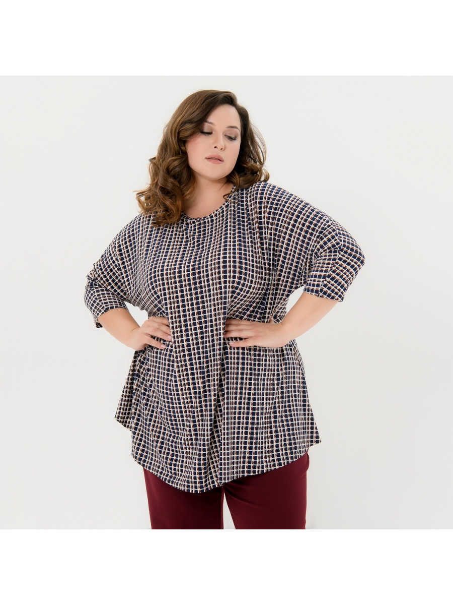 Туника свободная из принтованного трикотажа-масло. Рукав цельнокроенный, 3/4