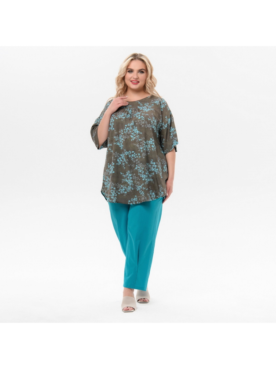 Летняя туника из штапеля свободного силуэта. Горловина на закругленной широкой обтачке. По центру переда из-под обтачки небольшая сборочка, по центру спинки - встречная