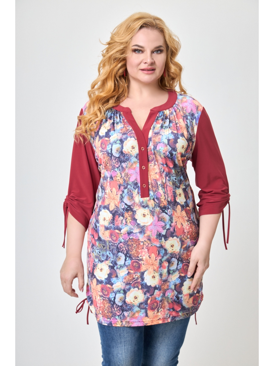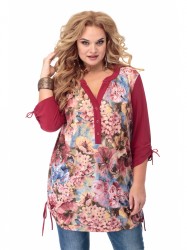 Туника – предмет гардероба, не сдающий позиций уже несколько сезонов подряд, потому что это – комфорт и женственность! Выполнена из приятной и мягкой на ощупь снаружи и к телу эластичной ткани с цветочным принтом (ткань тянется). Туника прямого силуэта с продуманными конструкторскими деталями. Округлый вырез горловины оформлен притачной стойкой с небольшой сборкой по переду у шва притачивания. Застежка на пуговицы по притачным планкам ниже линии груди. Втачной рукав к низу присборен тесьмой в кулиске. Боковые швы также присборены тесьмой и могут регулироваться по желанию. Высокая функциональность и комбинаторность – ценнейшее преимущество туники!