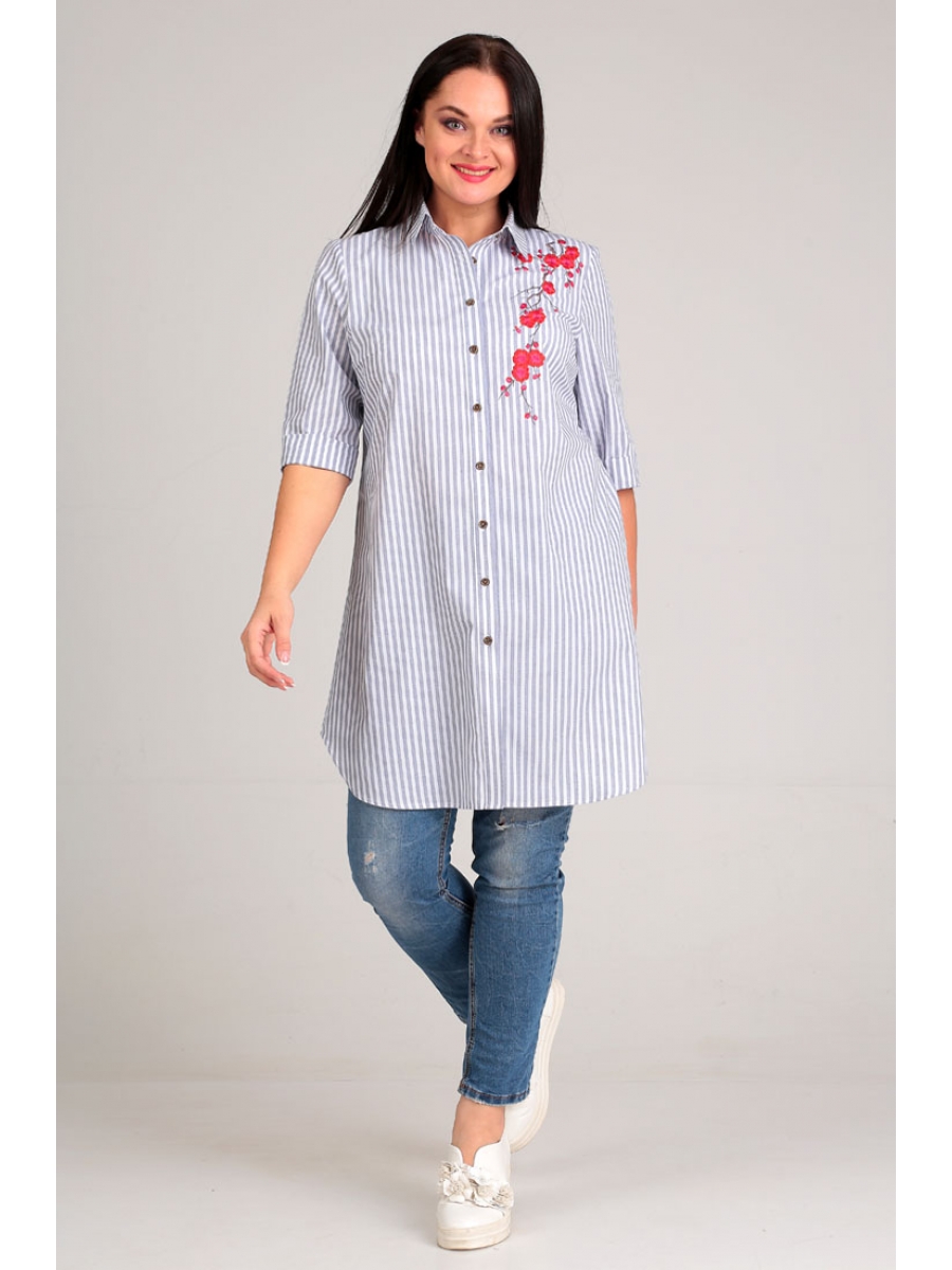 Оформить заказ →62265 – блуза женская, удлиненная, к низу чуть расширена. Застежка центральная, на планку до низа. Воротник втачной, рубашечный на стойке. Рукав втачной, с цельнокроеным, заутюженным вверх манжетом. Длина рукава ¾, за счет отворота вниз манжет - можно удлинить рукав. На полочках имеются нагрудные вытачки. На левой полочке вышита аппликация « ветка сакуры».