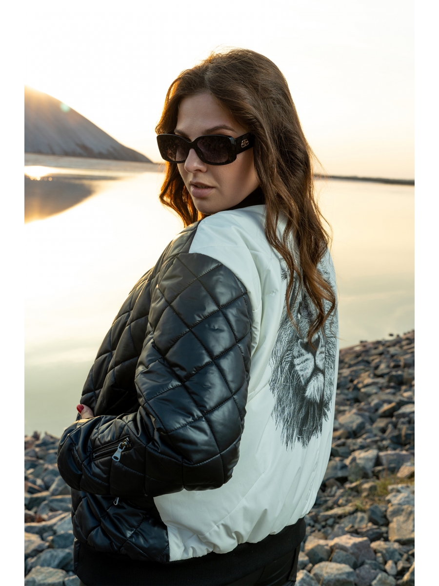 Оформить заказ →Куртка-бомбер женская модная и современная, из ромбовидной стёганной плащевки, спинка из пальтовой ткани на синтепоне с печатью "лев" с застёжкой на металлическую тесьму-молнию, с боковыми карманами на металлические молнии, на синтепоне 150 ГР, на подкладке. Стойка манжеты и низ куртки выполнены из плотного довяза.