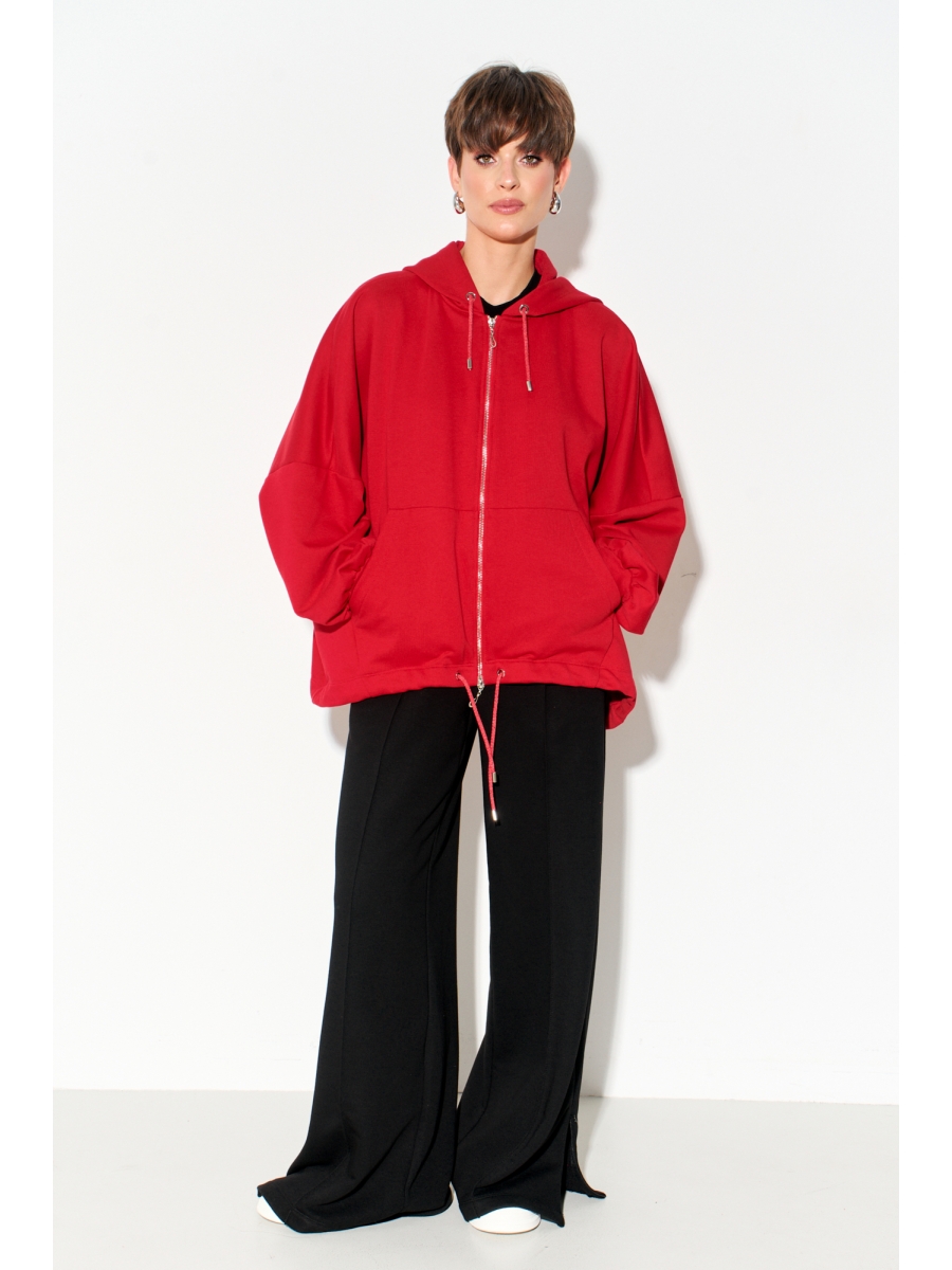 Бомбер оверсайз с капюшоном выполнен из футера 3-х нитки класса "пенье", отличается своим свободным кроем и максимально спущенной линией плеча. По переду изделия накладные функциональные карманы; застёжка на молнию; по капюшону и низу бомбера вставлен декоративный шнур; низ рукавов дополнен эластичным довязом, что подчеркивает современный стиль.
