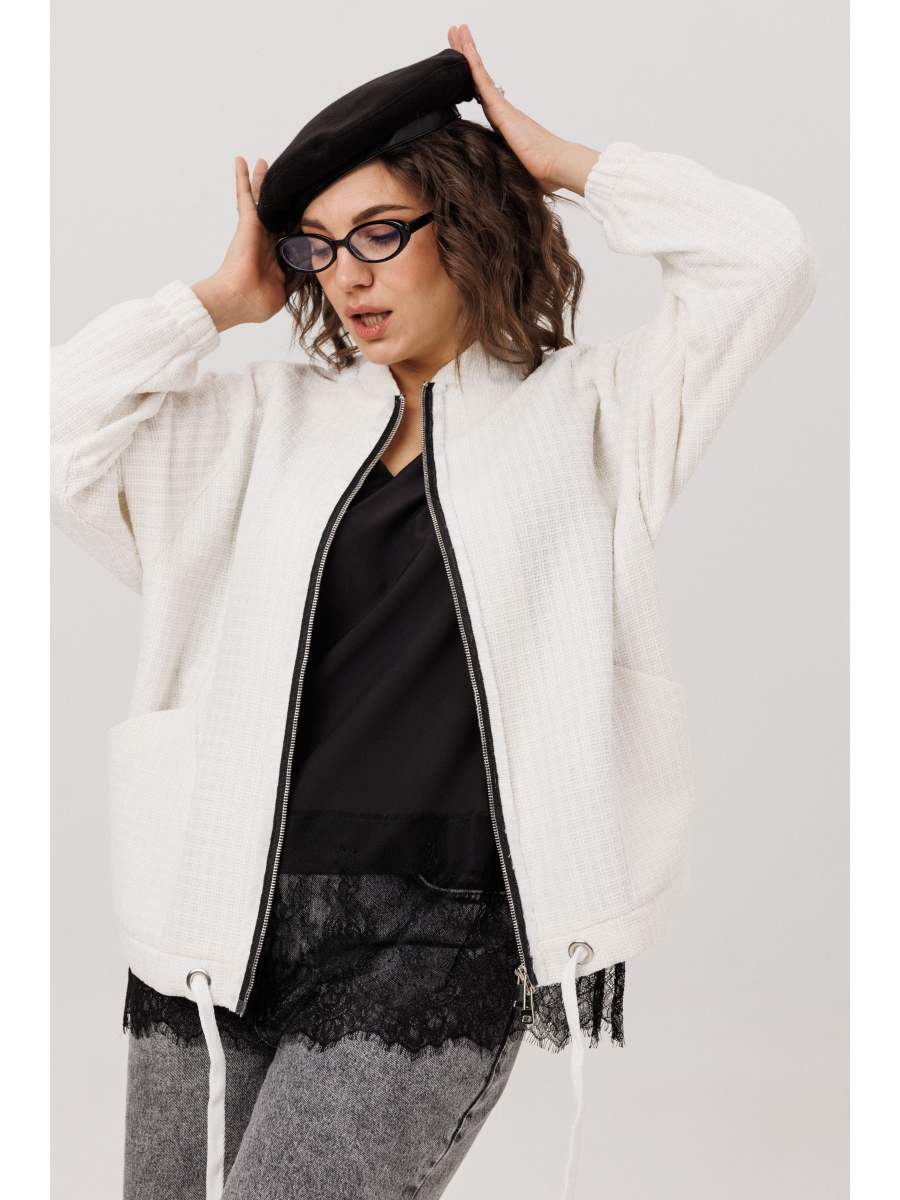 Этот блузон, словно воплощение непринужденной элегантности, предлагает ощущение комфорта, которое становится продолжением тебя. Его прямой силуэт, лишенный строгих границ, мягко следует за очертаниями фигуры, даря свободу каждому движению. Уют обрамляет горловину благодаря воротнику-стойке, создавая ощущение защищенности в прохладный день. Центральным элементом, приковывающим взгляд, служит застёжка-молния, чья фактурная текстура напоминает легкую, пушистую изморозь, придавая практичной детали неожиданно художественный эффект.