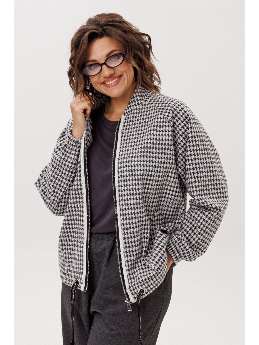 Этот блузон, словно воплощение непринужденной элегантности, предлагает ощущение комфорта, которое становится продолжением тебя. Его прямой силуэт, лишенный строгих границ, мягко следует за очертаниями фигуры, даря свободу каждому движению. Уют обрамляет горловину благодаря воротнику-стойке, создавая ощущение защищенности в прохладный день. Центральным элементом, приковывающим взгляд, служит застёжка-молния, чья фактурная текстура напоминает легкую, пушистую изморозь, придавая практичной детали неожиданно художественный эффект.