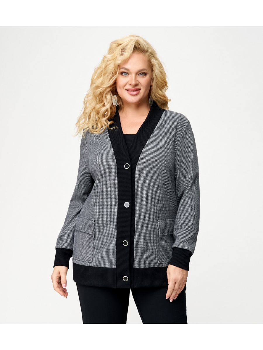 Оформить заказ →Кардиган женский прямого силуэта с застежкой на пуговицы, по переду с накладными карманами с клапаном. Рукав длинный, низ обработан притачной манжетой. По низу изделия притачной пояс. По переду и горловине спинки притачная планка.