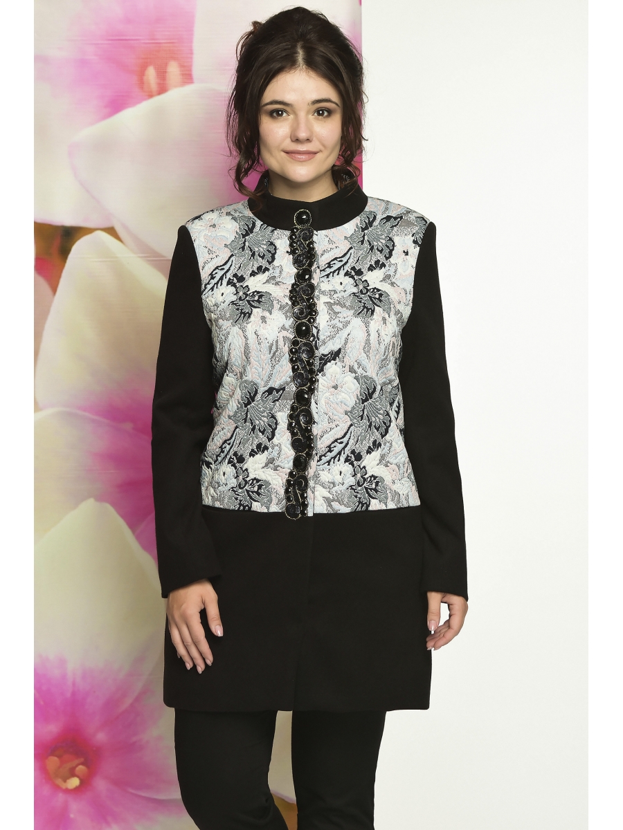 Оформить заказ →Комфортный стильный кардиган прямого силуэта из комбинации жаккардовой и пальтовой тканей. Воротник стоечка, рукав длинный втачной. По переду изделие декорировано тесьмой с камнями. Застёжка-скрытые кнопки. Кардиган на подкладке, без утепления, демисезонный. По переду втачные карманы в шве, соединяющем жаккард и пальтовую ткань.