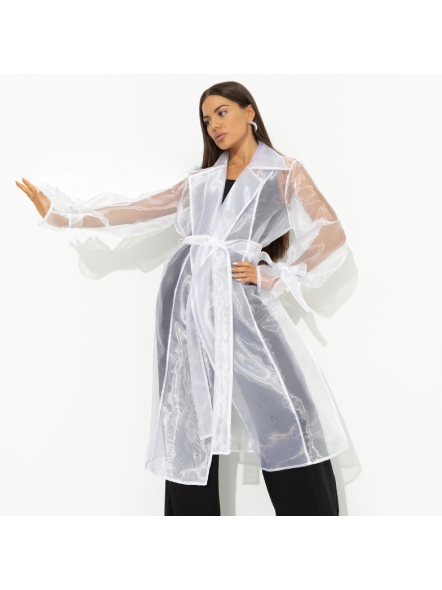 Оформить заказ →Ты хотела удивить его, а удивила сама себя. Кардиган CHARUTTI в прозрачном белом цвете пришел в твою жизнь, словно праздник. И теперь поход на почту, в кафе с подругами, на свидание и в музей выглядят совсем иначе. Кардиган в стиле тренча. Изделие с лацканами. Пояс в тон изделия в комплекте. Рукава оформлены завязками. Кардиган без застежек. Изделие полностью прозрачное. Походит в качестве второго слоя.