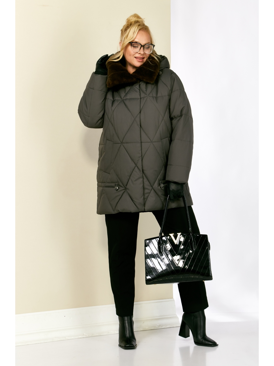 Зимняя, модная женская куртка, которая идеально подойдет для холодных дней, обеспечивая комфорт и защиту от ветра. Изделие прямого, классического стиля, выполнена из курточной матовой ткани высокого качества, непромокаемая. Утеплитель «Холлофайбер» хорошо держит форму и не сбивается. По переду центральная застежка на молнии и металлические кнопки. Карманы прорезного типа на магнитах. Нижняя часть изделия регулируется декоративным шнуром. Рукав втачной. Для защиты от ветра и мороза, рукава по низу дополнены внутренними трикотажными манжетами. Воротник отделан мехом, максимально по внешнему виду приближенный к натуральному «Норка». Капюшон съемный, регулируется декоративным шнуром. Спинка цельная.
