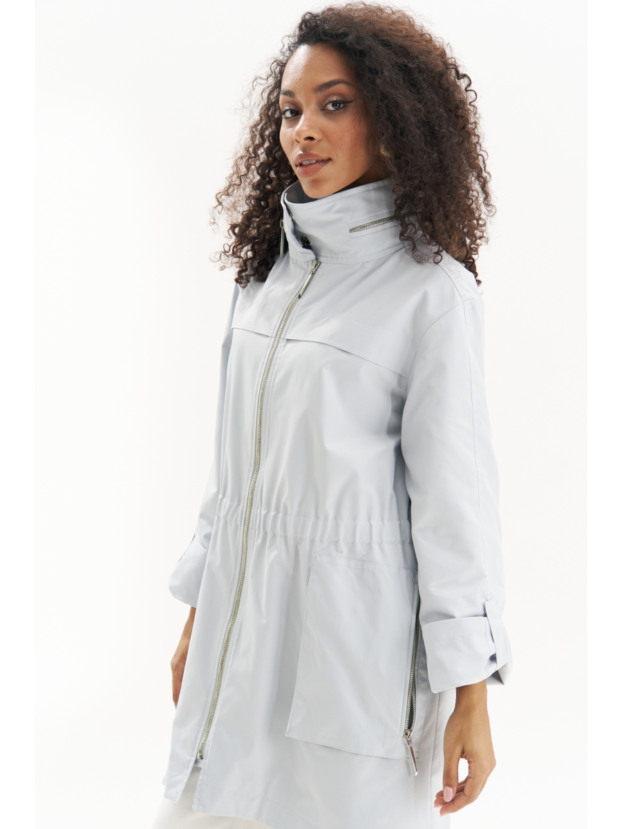 Эта легкая куртка – идеальный баланс между стилем и комфортом. Выполненная в универсальном светлом оттенке, она придает образу свежесть и элегантность, а свободный силуэт с утяжкой на талии подчеркивает фигуру, создавая женственный силуэт. Эта куртка станет стильной основой для любого весенне-осеннего гардероба!