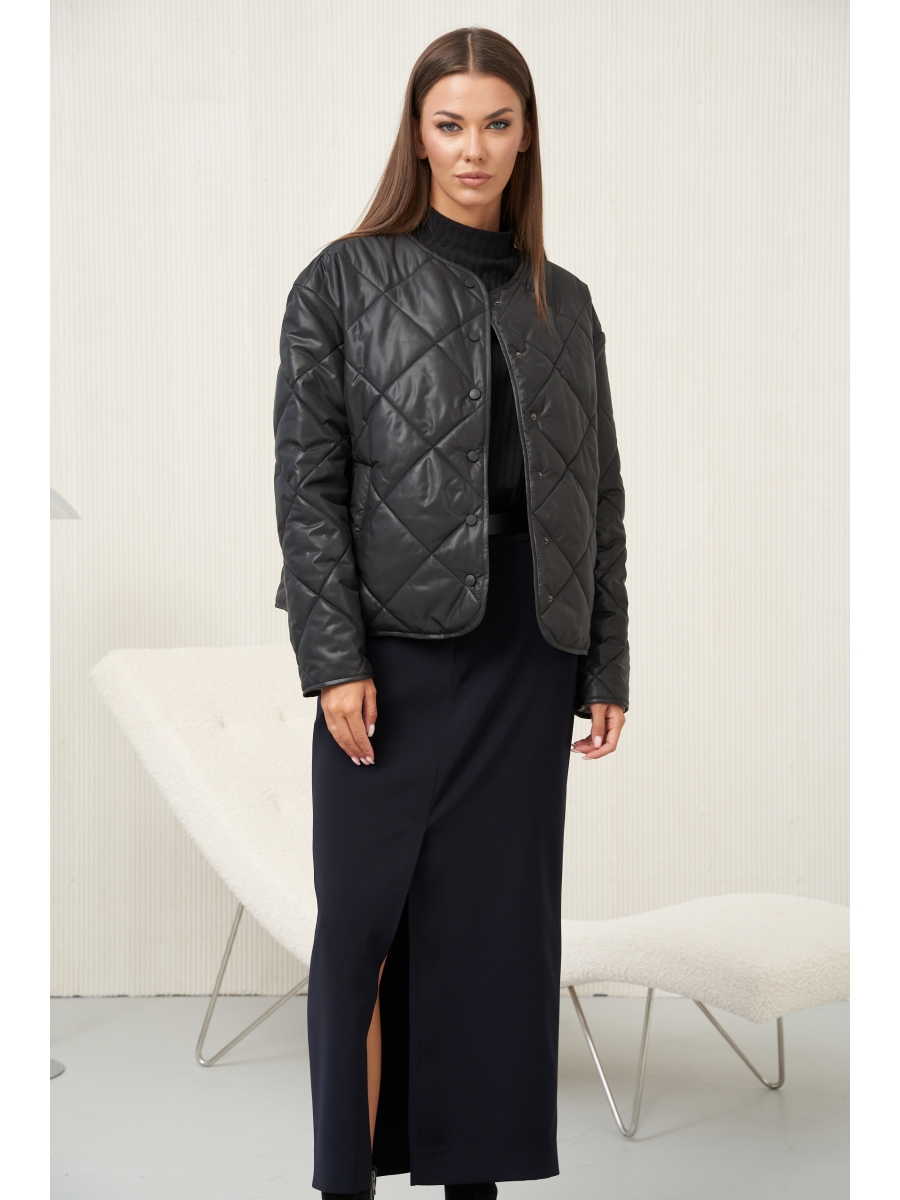 Прямой свободный силуэт, рубашечный покрой со слегка заниженной линией плеча. Застёжка центральная на кнопки. Полочки с прорезными карманами и листочками. Утеплитель 100 гр/м2.