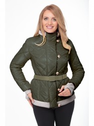 Втачные карманы на потайной молнии по переду куртки. Дополнены съемным поясом.