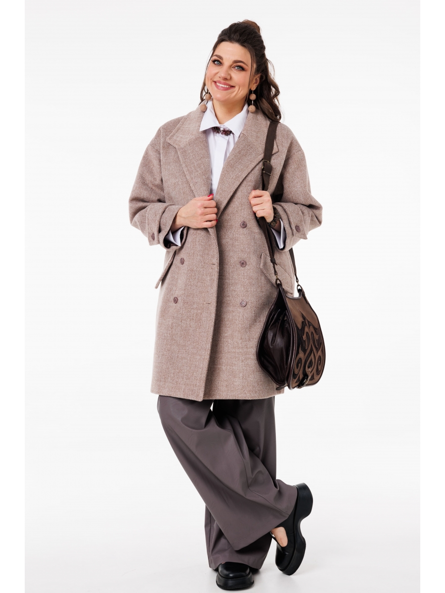 Модель оверсайз со спущенным плечом создана для тех, кто ценит свободу движений и непринужденную элегантность. Двубортный крой придает пальто особый шарм, а паты на рукавах со скосом — изысканную деталь, которая привлекает внимание. Карманы с клапанами добавляют функциональности, сохраняя при этом общий утончённый образ.