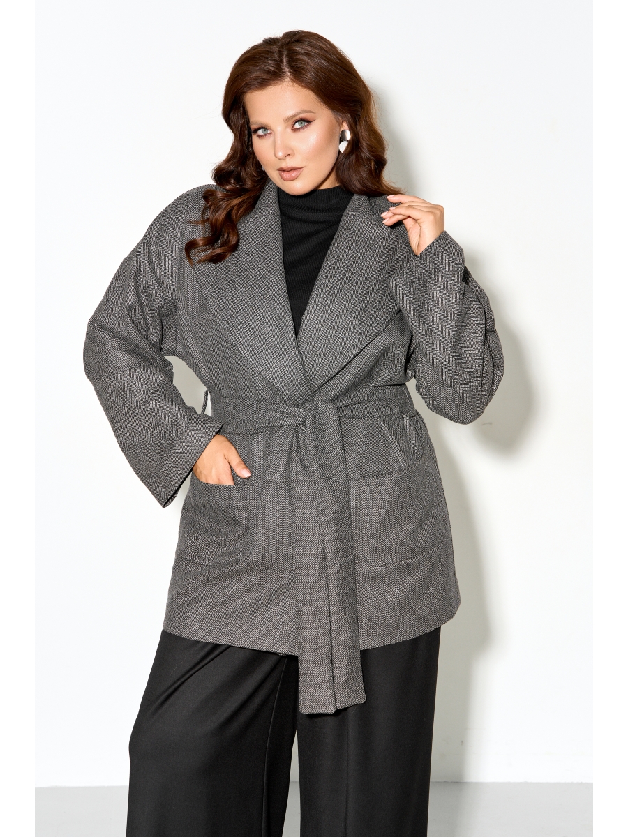 Стильное женское облегченное полупальто свободного силуэта на подкладке выполнено из тонкой пальтовой ткани. По переду функциональные втачные карманы, имитирующие накладные; рукава со спущенной линией плеча; лацканы имеют фигурную форму; застежка на потайные пришивные кнопки.