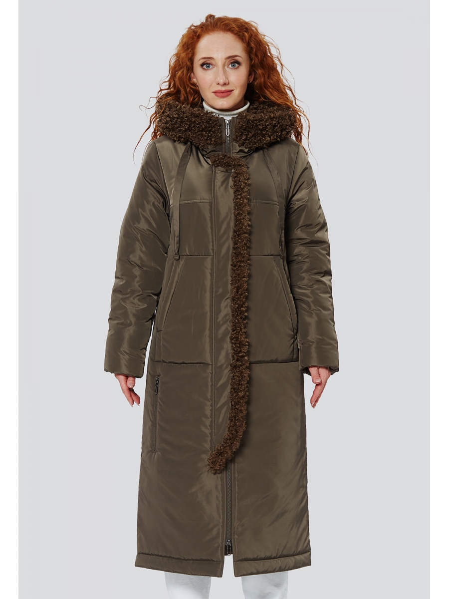 Модное пальто прямого силуэта из ткани мемори с водоотталкивающей пропиткой и суперсовременным утеплителем ТермМакс.За дополнительную защиту от непогоды отвечает капюшон с цельноекроенной стойкой, который можно красиво разложить по типу воротника-апаш. Капюшон внутри отделан супермодным шелковистым Эко мехом "под козлик", что свидетельствует о высоком уровне дизайна и проработки изделия. Модель с застежкой на молнию, закрытую ветрозащитным клапаном на кнопках. Рукав с трикотажной манжетой.