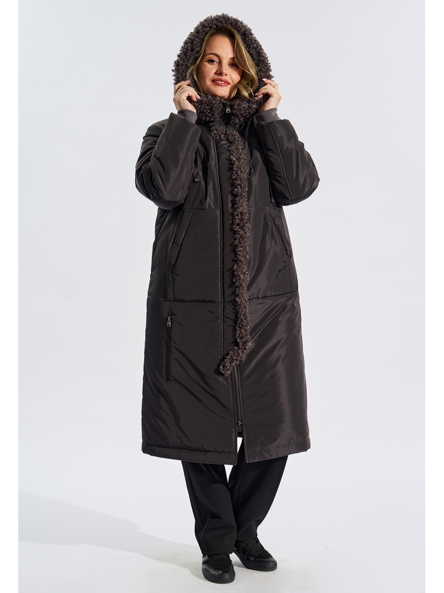 Модное пальто прямого силуэта из ткани мемори с водоотталкивающей пропиткой и утеплителем ТермМакс.За дополнительную защиту от непогоды отвечает капюшон с цельноекроенной стойкой, который можно красиво разложить по типу воротника-апаш. Капюшон внутри отделан супермодным шелковистым Эко мехом "под козлик". Модель с застежкой на молнию, закрытую ветрозащитным клапаном на кнопках. Рукав с трикотажной манжетой, помогающей регулировать длину рукава. На полочке три функциональных кармана. Сзади шлица
