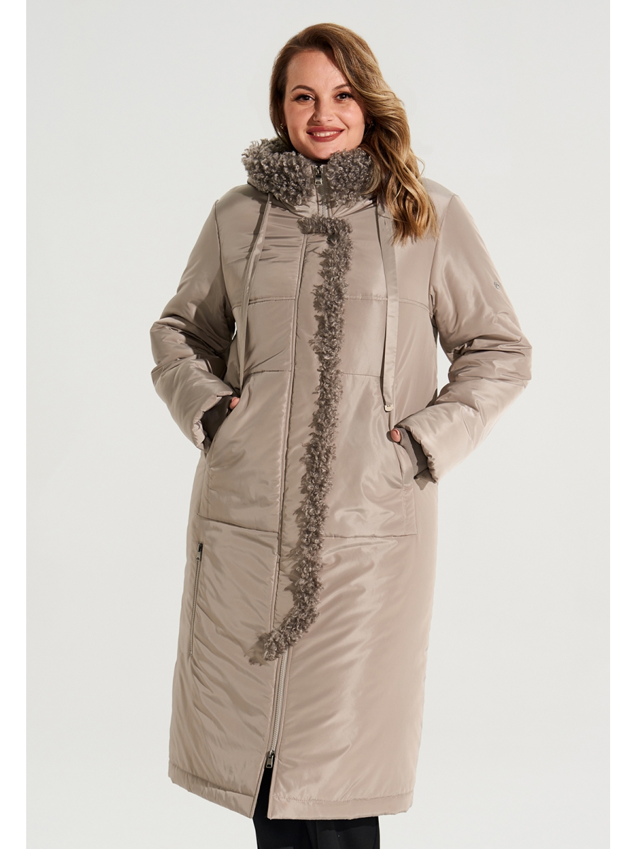 Модное пальто прямого силуэта из ткани мемори с водоотталкивающей пропиткой и утеплителем ТермМакс.За дополнительную защиту от непогоды отвечает капюшон с цельноекроенной стойкой, который можно красиво разложить по типу воротника-апаш. Капюшон внутри отделан супермодным шелковистым Эко мехом "под козлик". Модель с застежкой на молнию, закрытую ветрозащитным клапаном на кнопках. Рукав с трикотажной манжетой, помогающей регулировать длину рукава. На полочке три функциональных кармана. Сзади шлица