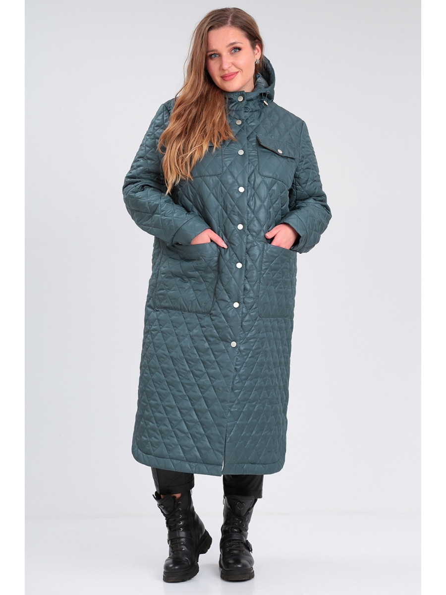 Пальто женское свободного силуэта изготовлено из стеганной курточной ткани на синтепоне.